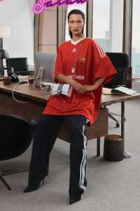 For the ad campaign, French actress Isabelle Huppert and supermodel Bella Hadid wear oversized T-shirts with the three iconic white diagonal adidas stripes and are photographed by photographer Joshua Bright with the Manhattan skyline in the background. At the centre of this campaign is the Hourglass bag, one of the French fashion house’s flagship models, then the Triple S and Speed trainers, this time with the emblematic Adidas logo. This collection is the perfect representation of sporty wardrobe classics, such as the hooded jacket and bomber jacket, with a more oversized and edgy cut.